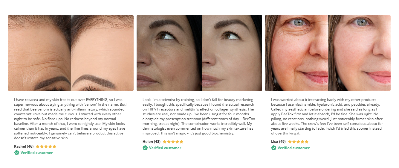 One of the biggest questions I get about BeeTox Anti-Aging UK is: "Does it hurt?" The answer is No. You might feel a very slight, tingly sensation for a few seconds after application, which actually lets you know the ingredients are active. However, if you have a known allergy to bee stings, you should always perform a patch test first or consult your dermatologist.
